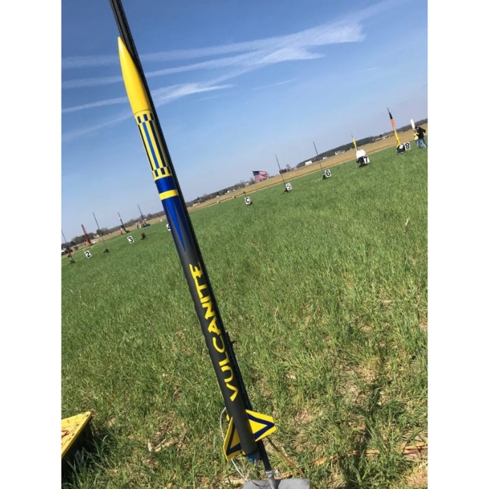 One of the ISP PERFORMANCE SERIES of kits, which feature factory pre-slotted airframe and through-the-wall fin construction and high power motor capabilities, the VULCANITE is a true high power performer. The 38mm motor mount is for Level 1 and Level 2 power if your field can handle it. This kit flies great on a variety of F and G motors using the optional MMA-2 motor mount adapter. Parachute Recovery.